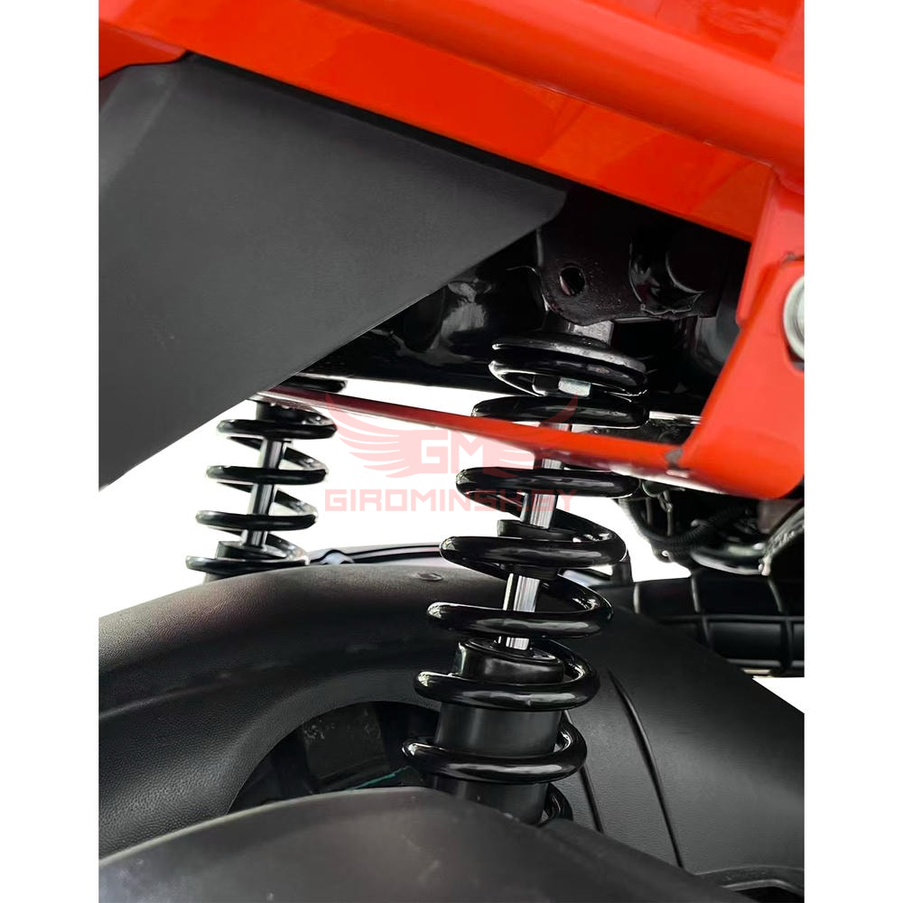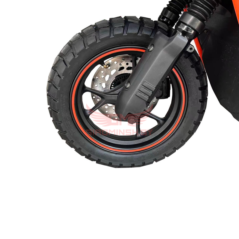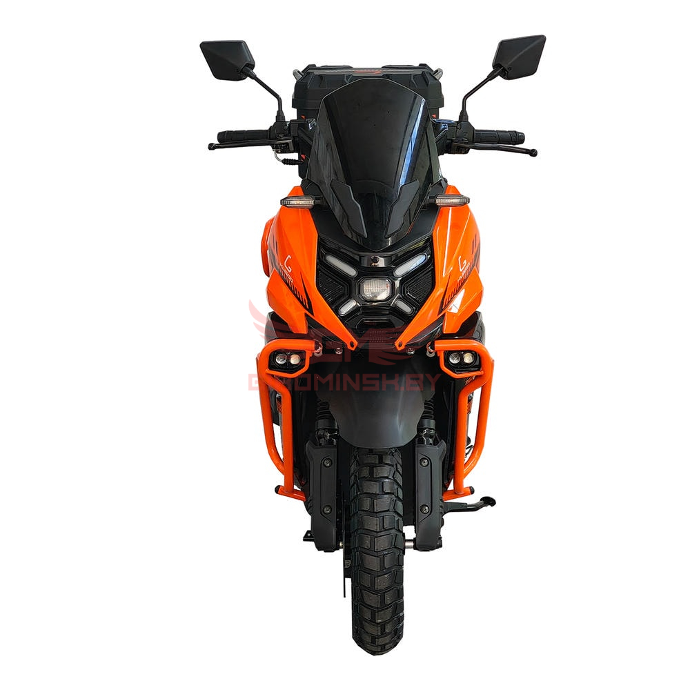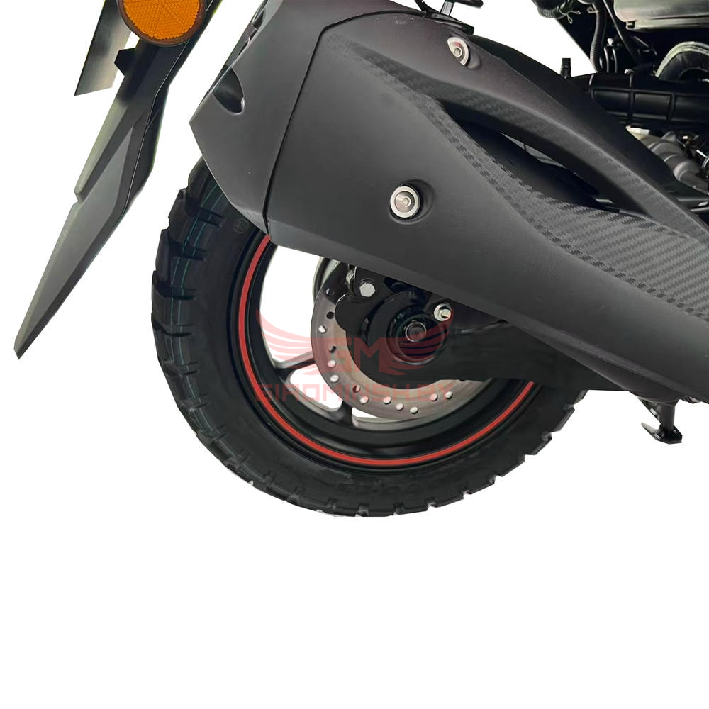 Модель впечатляет своей устойчивостью и проходимостью. Широкие колёса (120/70‑12 спереди и сзади) и дорожный просвет 115 мм позволяют уверенно передвигаться по неровным поверхностям. Мощный двигатель объёмом 168,9 см³ развивает максимальную мощность 7,0 кВт при 6500 об/мин и крутящий момент 11 Н·м при 5000 об/мин. Благодаря этому мотоцикл способен разгоняться до 88 км/ч — этого достаточно для комфортных поездок по городу и выездов на трассу.