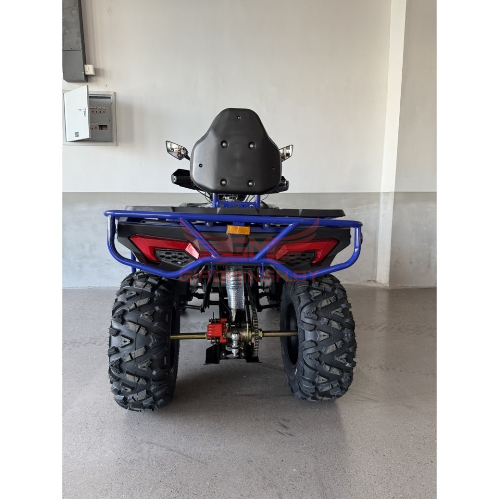 Этот квадроцикл — мощный и надёжный партнёр для поездок по бездорожью, будь то охота, рыбалка или активный отдых в горах и лесу. 200‑кубовый одноцилиндровый двигатель с водяным охлаждением и вариатором обеспечивает стабильную тягу и плавный разгон, а автоматическая трансмиссия с реверсом упрощает движение даже в стеснённых условиях. Максимальная скорость до 65 км/ч позволяет быстро преодолевать открытые участки, а большие колёса 12" с внедорожным протектором уверенно держат сцепление на грязи, песке и гравии.