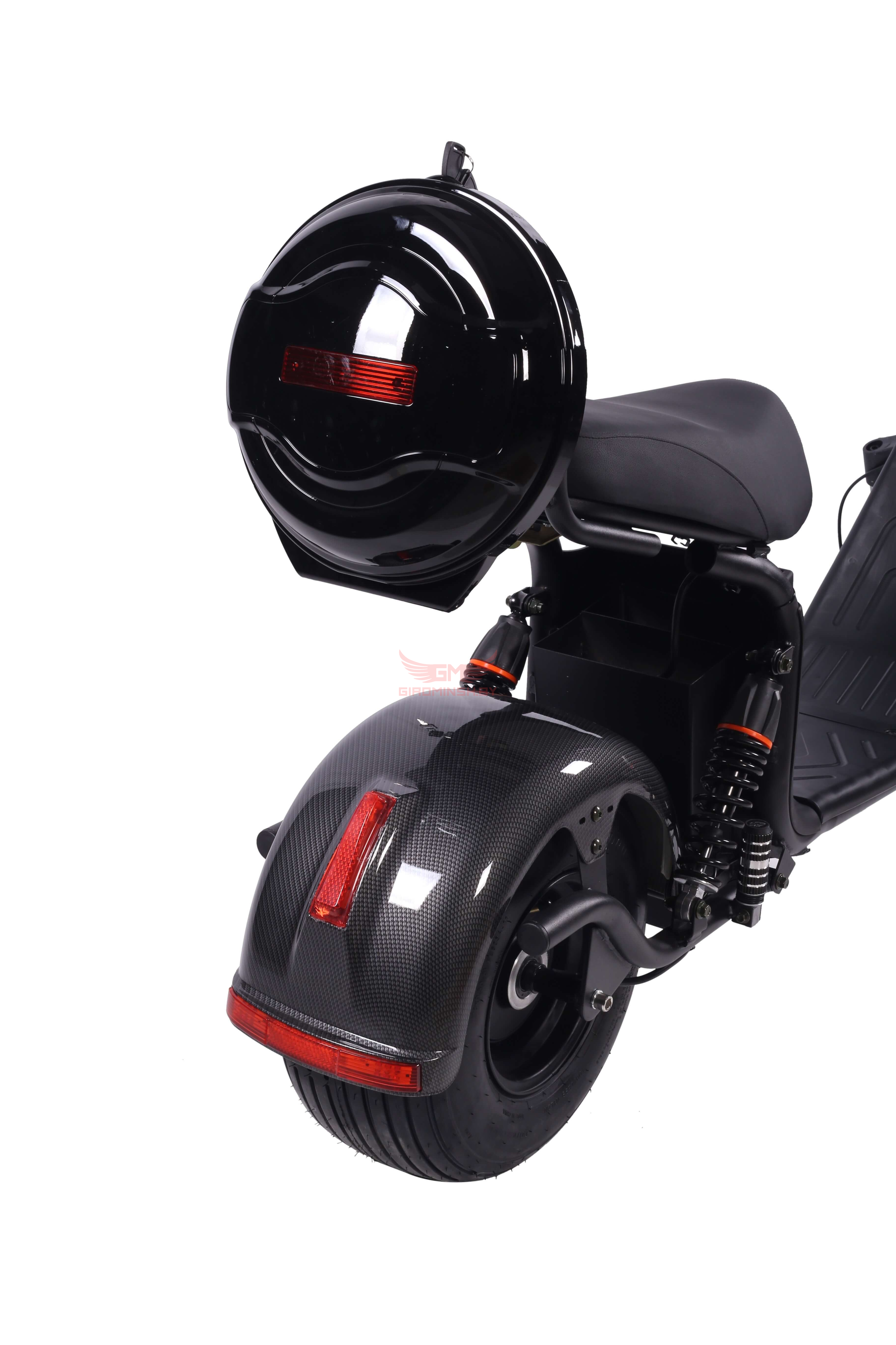 Мощность двигателя составляет 2000 W, что позволяет развивать скорость до 50 км/ч. Емкость аккумулятора 60v/20 ah дает возможность проехать 50 км без подзарядки. Время полной зарядки - 8 ч. Масса электроскутера - 61 кг, а максимально допустимая нагрузка - 150 кг. Диаметр колес 8" обеспечивает хорошую проходимость.