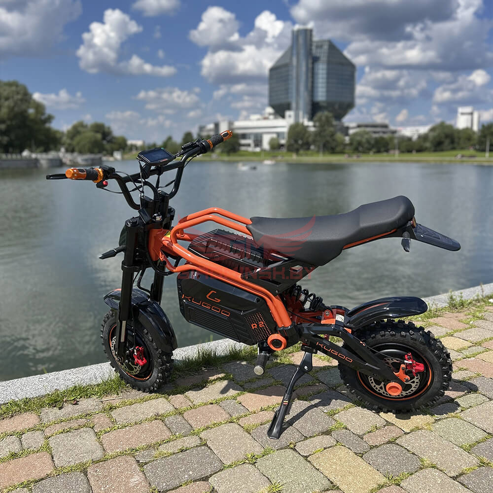 Электропитбайк Kugoo R2 сочетает в себе функциональность городского транспорта и возможности для активного отдыха. Его мощные двигатели позволяют уверенно двигаться как по ровным улицам, так и по грунтовым дорогам, а аккумулятор увеличенной ёмкости даёт возможность преодолевать значительные расстояния без частых остановок на зарядку. Продуманная подвеска и крупные колёса смягчают неровности, обеспечивая плавный ход, а надёжные гидравлические тормоза делают управление безопасным. Стальная рама рассчитана на долговременную эксплуатацию, сиденье и багажник добавляют удобства, а световые элементы обеспечивают хорошую видимость даже в вечернее время. Kugoo R2 подойдёт тем, кто ищет универсальный транспорт: он одинаково комфортен для ежедневных поездок, дачных маршрутов и выездов на природу.