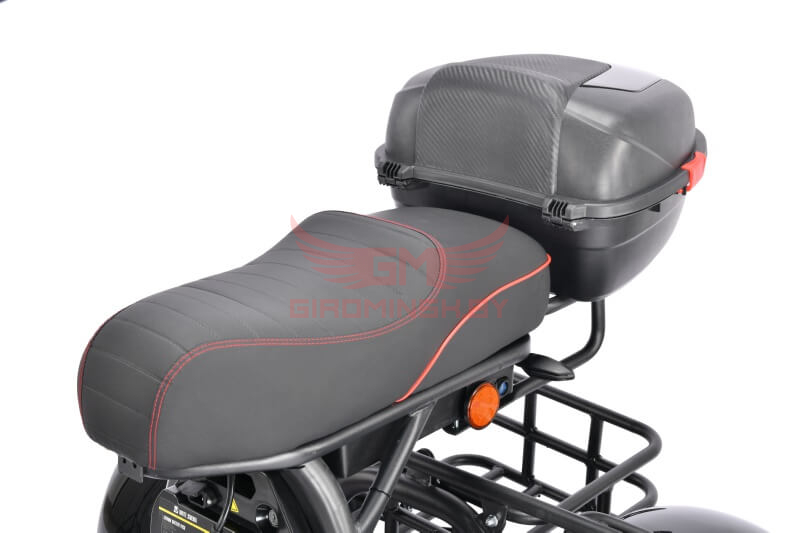 Комфорт в поездке обеспечивают: удобная посадка, амортизированное сиденье, позволяющее перевозить пассажира, а также наличие на 3 колесах воздушно-масляных амортизаторов. Широкие пневматические колеса имеют наружный диаметр 18″, что обеспечивает конструкции наличие клиренса около 16 см.