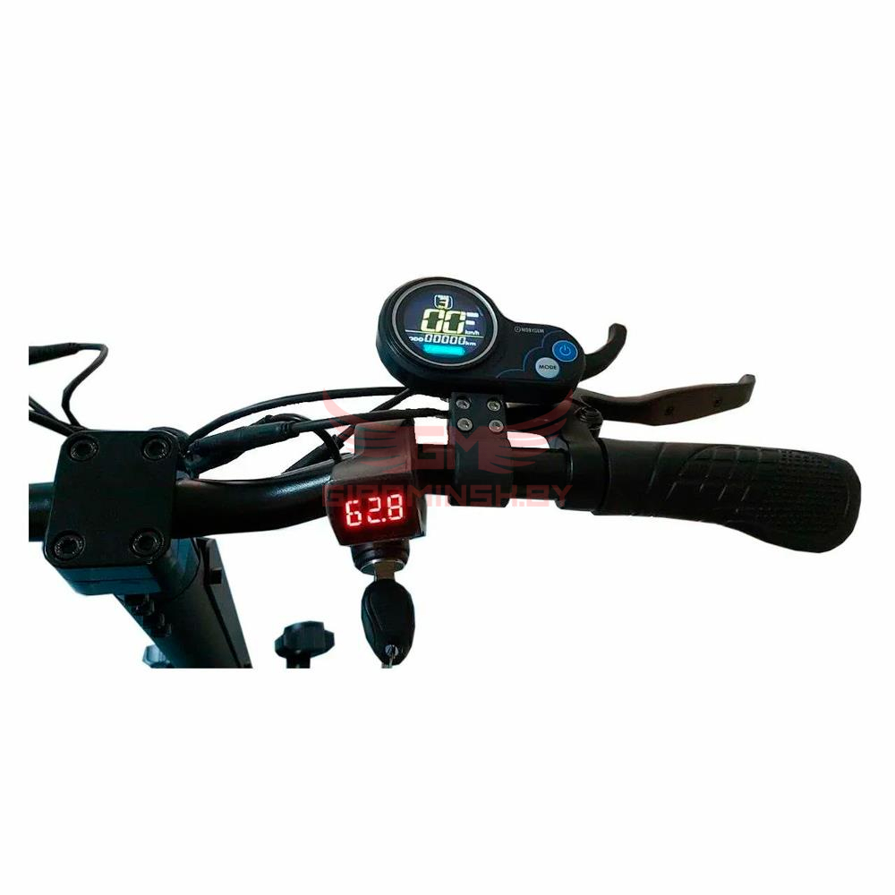Также важно, что при желании можно отключить одно колесо в любой момент, тем самым значительно снизив потребление энергии. Для удобства управления производитель сделал руль IKINGI G1 pro достаточно широким, и разместил вольтметр справа на руле. Такое продуманное расположение бортового компьютера позволяет райдеру проконтролировать скорость или оставшийся заряд, не отвлекаясь от дороги.