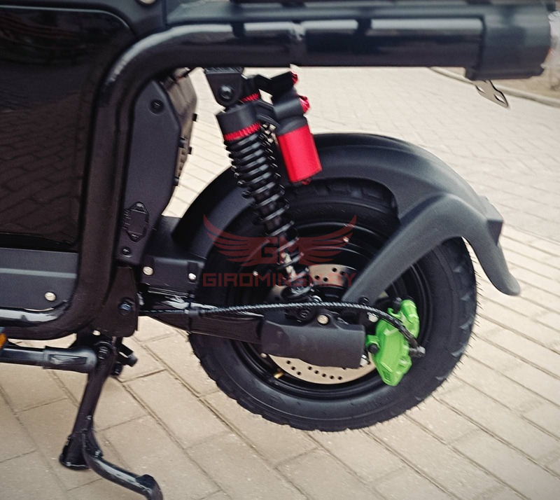 Корпус электроскутера изготовлен из стали, что обеспечивает ему прочность и долговечность. Тормоза гидравлические, что обеспечивает эффективное и безопасное торможение.