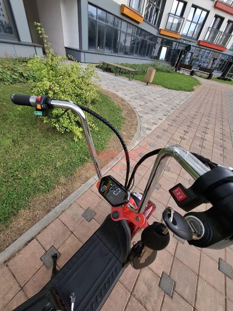Максимальная скорость — до 25 км/ч. Идеально для города, дачи или двора, без необходимости водительских прав. Быстрее пешком и удобнее велосипеда — особенно с ребёнком или грузом, отличная альтернатива машине.