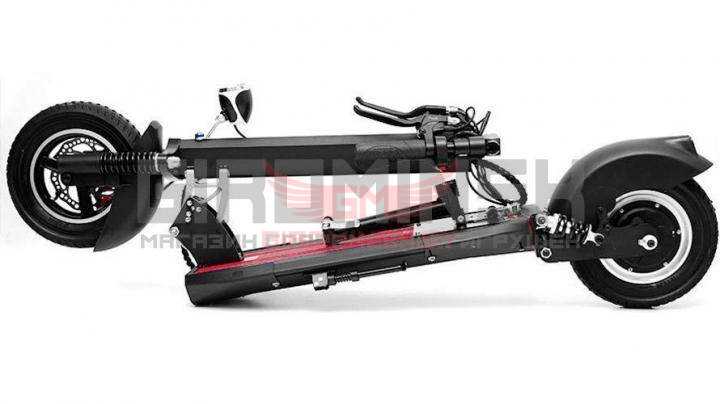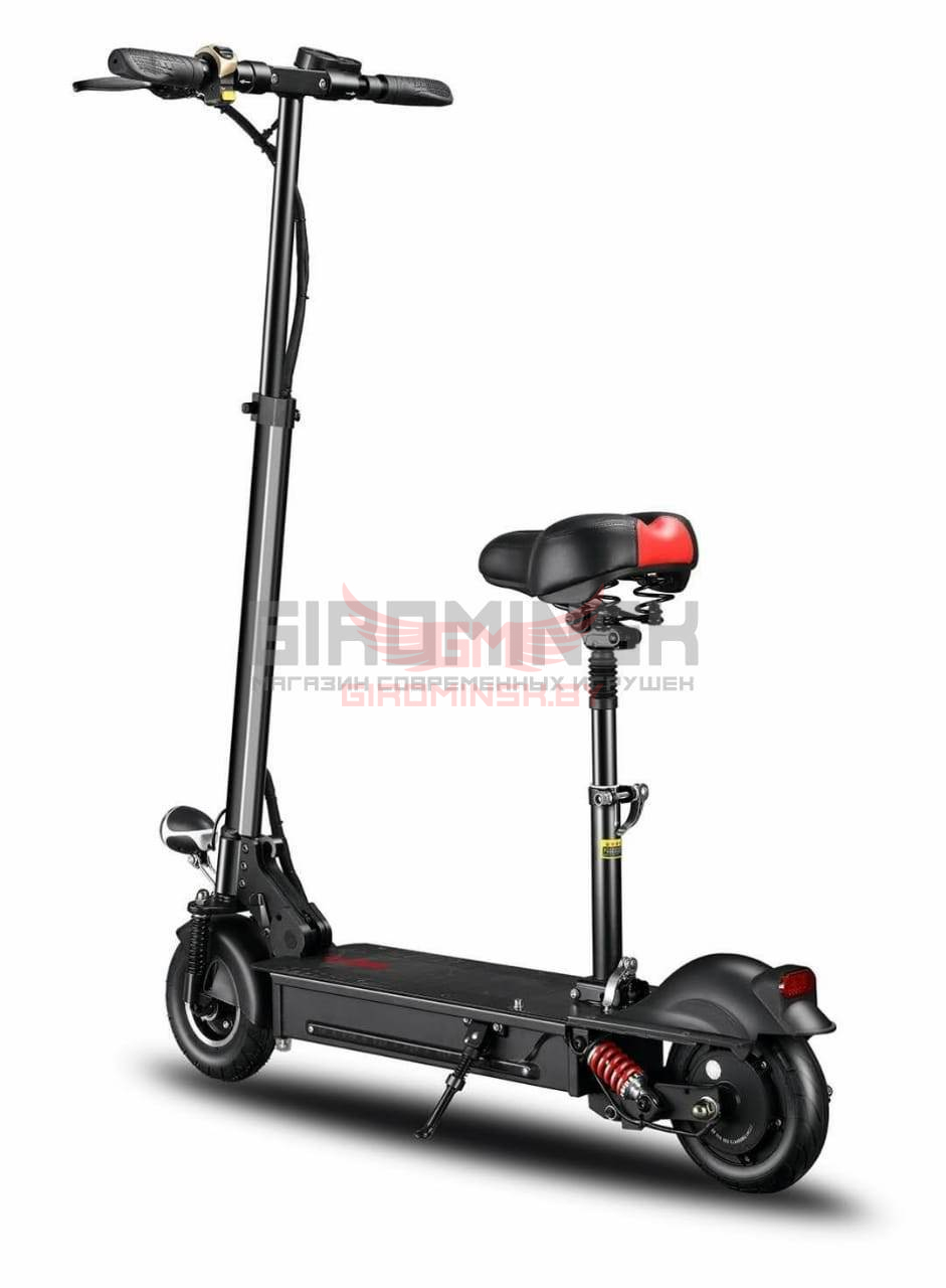 Каждое колесо электросамоката снабжено двумя амортизаторами, это обеспечивает снижение тряски и вибрации при движении по неровным дорогам, переднее колесо пневматическое. Модель снабжена широкой декой, на которой будет удобно ставить ноги.