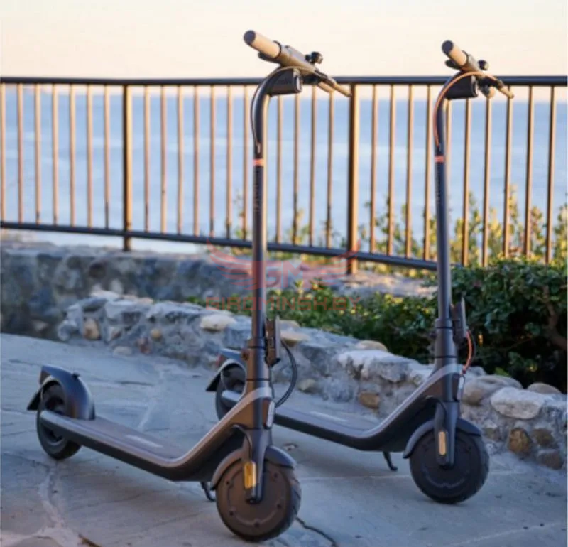 Безвоздушные литые шины. Ninebot KickScooter E2 получил новые безвоздушные литые шины диаметром 8,1 дюйма. В отличие от достаточно жёстких цельнолитых покрышек предыдущего поколения, в новинке предусмотрены полости, за счёт которых обеспечивается амортизация во время движения. Такие шины не боятся проколов, их не нужно подкачивать и вообще они не требуют никакого обслуживания!