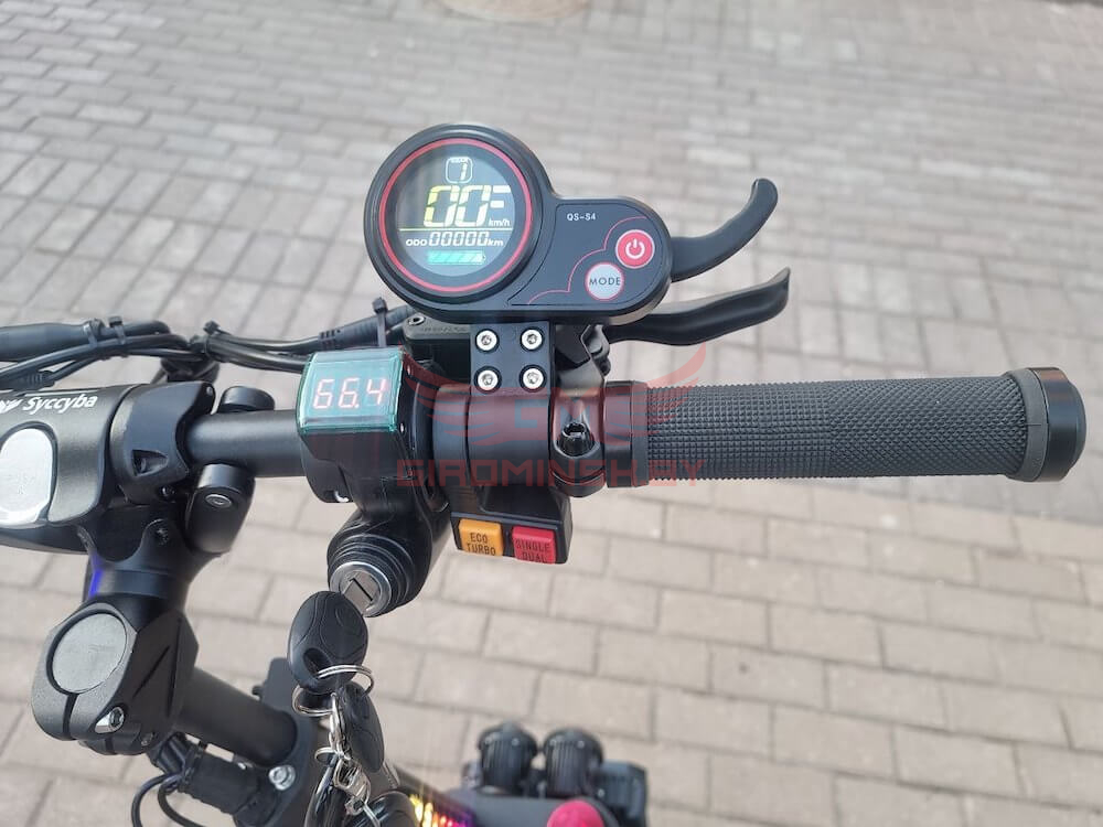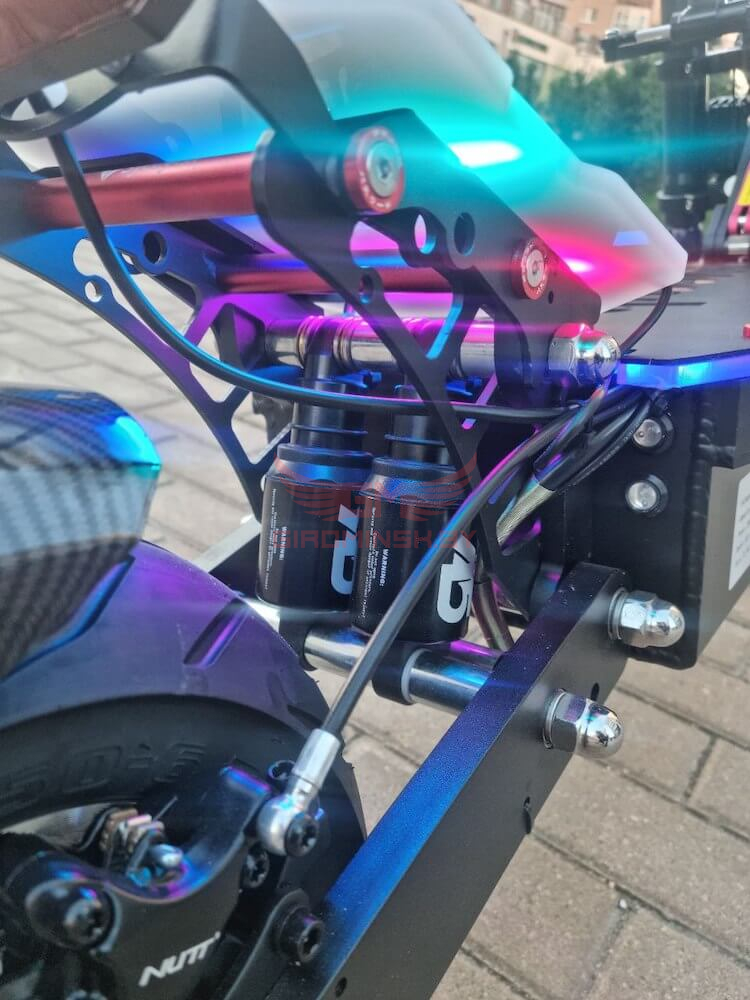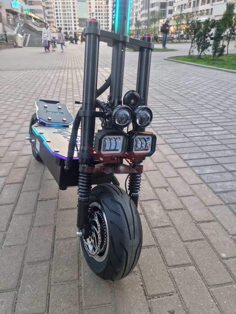 Установленные два мотор-колеса мощностью по 3000W каждый, помогут разгоняться до 90 километров в час. Аккумулятор ёмкостью 3000Wh позволит проезжать максимальную дистанцию до 100 километров на одном заряде, а чтобы зарядить её до 100 процентов, с помощью двух зарядных устройств понадобиться около 7 часов. АКБ имеет BMS плату с балансировкой ячеек, благодаря которой ваш аккумулятор прослужит долгие годы. Для дальних поездок есть возможность установить мягкое и удобное сиденье.