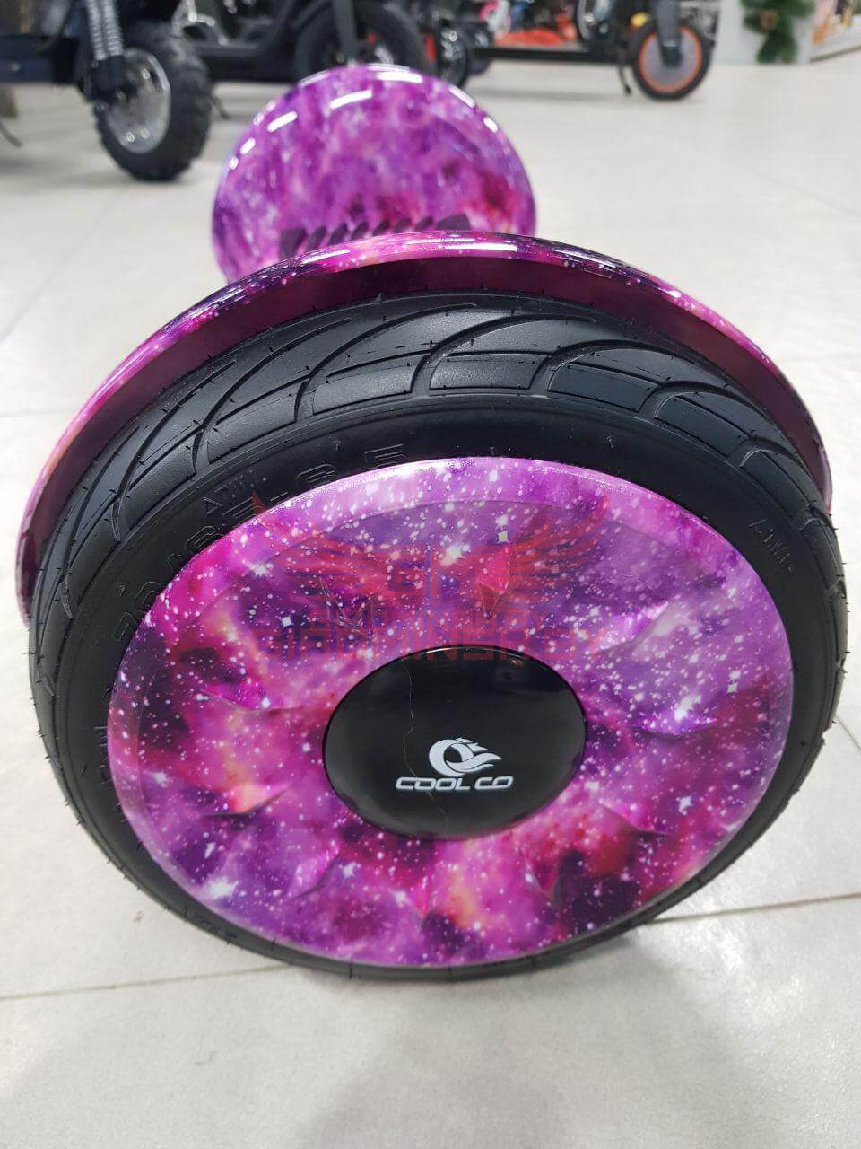 В данной модели увеличен диаметр колёс до 11 дюймов, а также значительно повышена их плотность и ширина. За счёт этого гироскутер отличается улучшенной проходимостью и устойчивостью, что позволяет преодолевать различные неровные поверхности (траву, камешки, брусчатку, различные виды плиток и прочие). Кроме того, металлические диски колёс оснащены стильными колпаками, выполняющими также и защитную функцию.