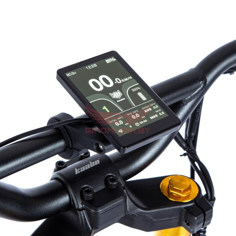 Фирменные мотор колеса KAABO обладают высочайшим качеством сборки, пыле и влагозащиты. Номинальное значение электромотора 2000w, а максимальное 4200w. В режиме полного привода кратковременно мощность достигает 8400w. Электросамокат KAABO WOLF KING GT PRO разгоняется до 100км/ч за считанные секунды. Всё это благодаря высоко оборотистым моторам и мощным синусным контроллерам по 50 ампер каждый. С момента своего создания компания KAABO сотрудничает с корейской компанией MINIMOTORS и использует их комплектующие. Благодаря этому вы можете купить электросамокат KAABO WOLF KING GT PRO+ в комплектации c контроллерами и дисплеем EYE от MINIMOTORS.
