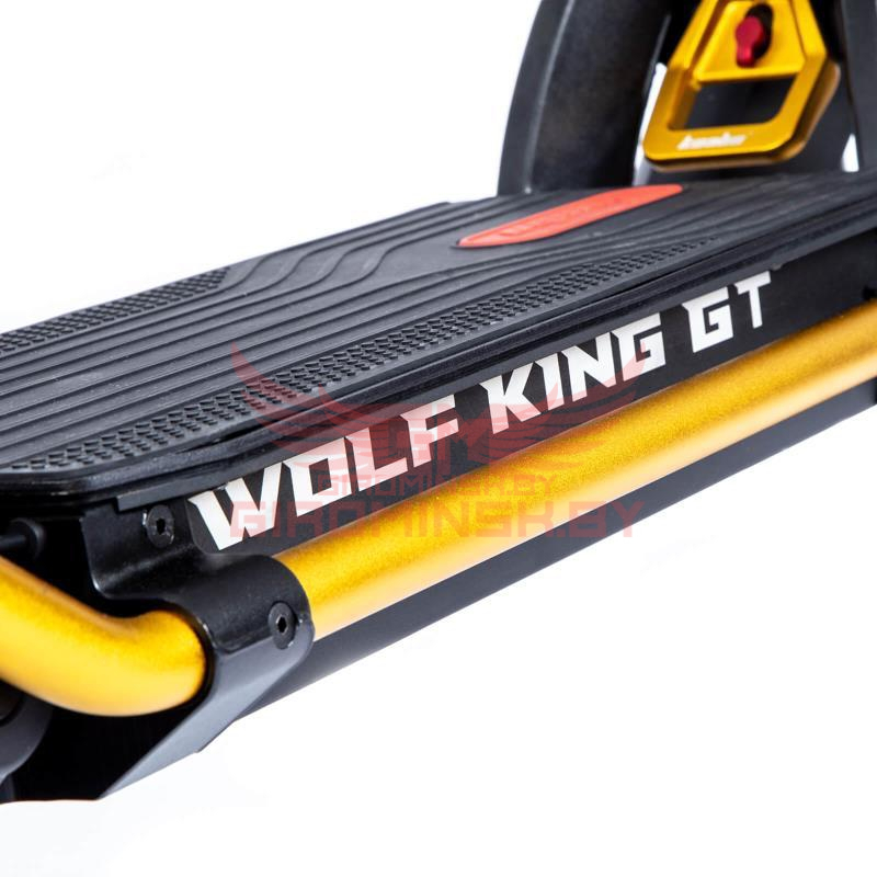 Необычная легко сплавная рама из высокопрочного алюминия имеет внушительный вес более 50кг. Это небольшая цена для того чтобы самокат выдерживал огромную скорость, имел запас прочности по бездорожью и обладал высокой грузоподъемностью до 150кг! Передняя вилка напоминает мотоциклетную подвеску. Это фирменный знак KAABO WOLF KING GT PRO и его предшественника WOLF WARRIOR. Она достаточно тяжелая и жёсткая. Два задних амортизатора так же обладают не большим ходом. Всё это сделано для стабильной езды по любым неровностям и на больших скоростях.