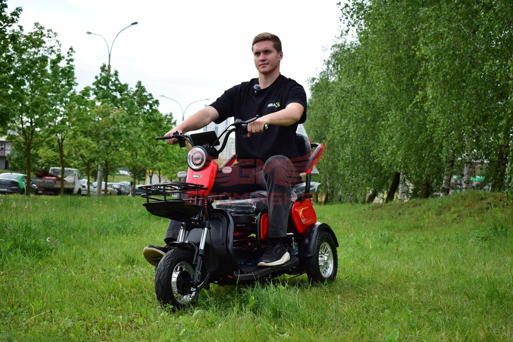 Максимальная скорость — до 25 км/ч. Идеально для города, дворов и дачи. Можно ездить без прав. Быстрее, чем пешком и удобнее, чем велосипед — особенно с грузом, доступная альтернатива автомобилю.
