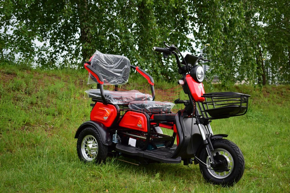 Два полноценных сиденья + багажник и корзина. Можно ездить вдвоем и положить сумки. Благодаря прочной конструкции и вместительной багажной корзине, модель легко перевозит грузы, инструменты или покупки.