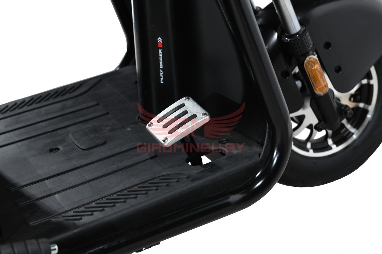 В данной модели удобное управление с комфортной посадкой при довольно компактных габаритах. 8-дюймовые колеса с низким профилем выглядят стильно, а за счет ширины и профиля покрышек отлично держат дорогу и уверенно останавливают электробайк. Классическое сиденье, оно мягкое, широкое, удобное и прекрасно подходит для длительных поездок. Верх сиденья отделан прочной и долговечной эко-кожей, которая устойчива к воздействию влаги и ультрафиолета.