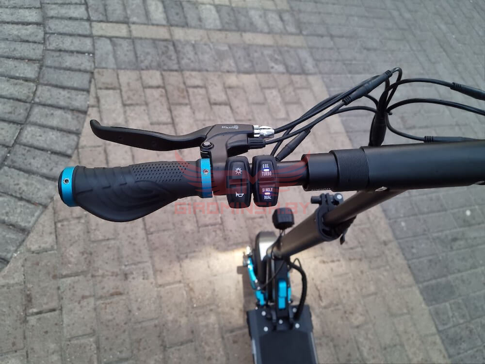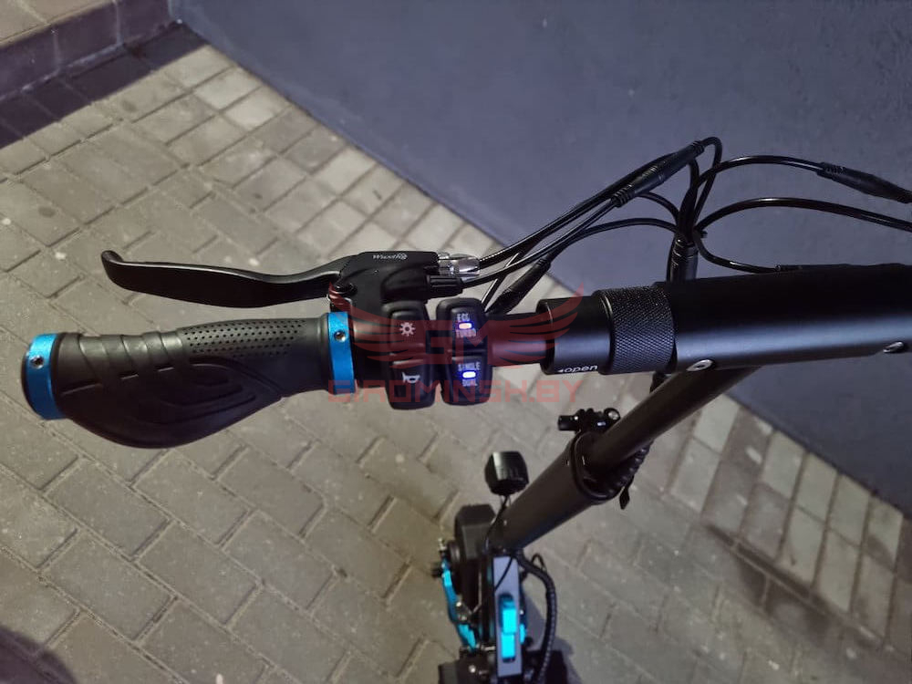- Самый легкий вес из полноприводных электросамокатов (24 кг)